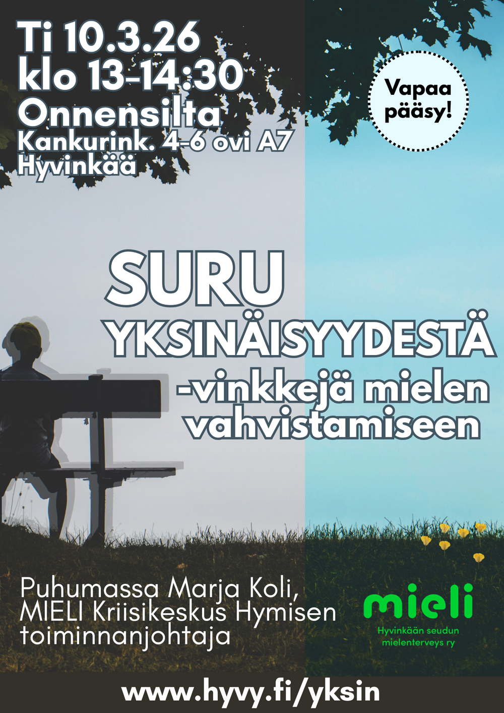 Tule mukaan keskustelemaan yksinäisyyden kokemuksista ja saa käytännön vinkkejä mielen vahvistamiseen sekä keinoja selviytymiseen haastavina aikoina. Kokoontuminen tarjoaa mahdollisuuden oppia uusia…