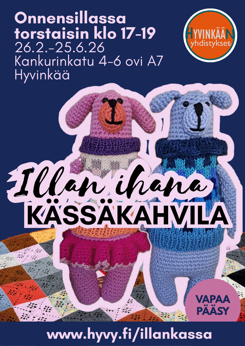 Tule viihtymään käsityön ja hyvän seuran parissa! Kaipaatko rentoa hetkeä ja mukavaa yhdessäoloa? Ota oma käsityösi mukaan ja tule Onnensiltaan nauttimaan kuppi kuumaa ja hauskasta seurasta. Mitä…