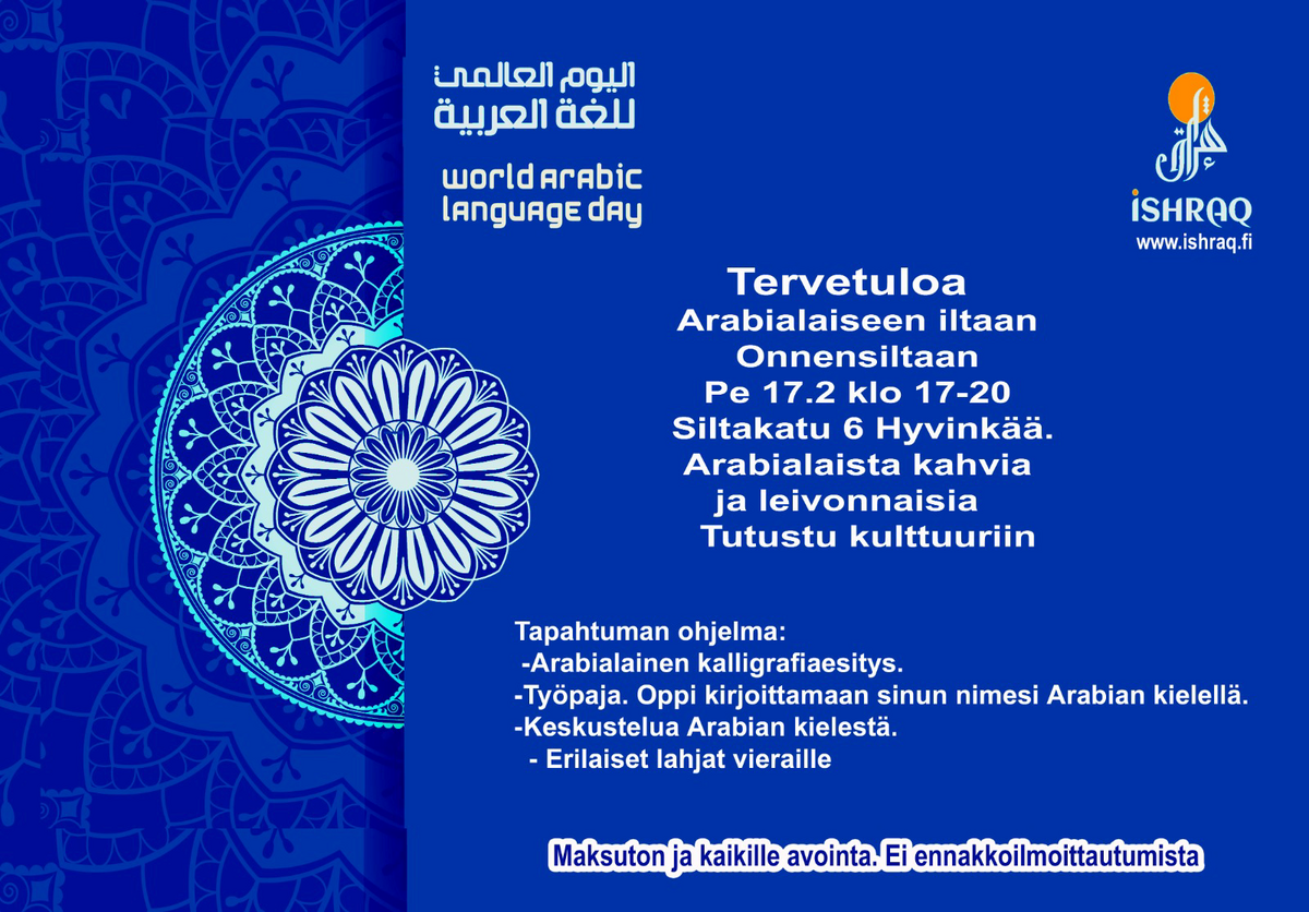 Tervetuloa Arabialaiseen iltaan! Tarjolla Arabialaista kahvia ja leivonnaisia.