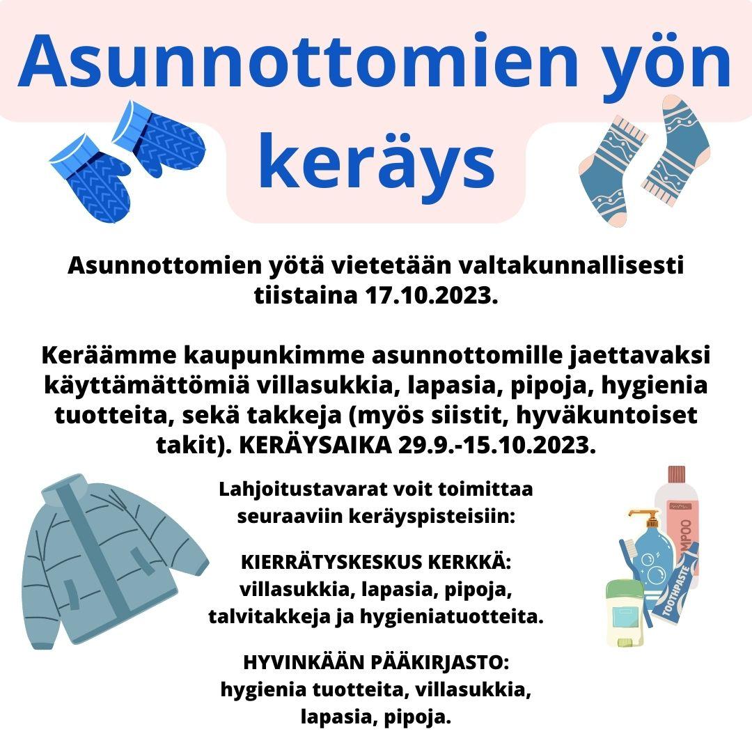 Keräyksen ja Hyvinkään asunnottomien yön tapahtuman järjestää paikallinen verkosto ja vapaaehtoistoimijat: