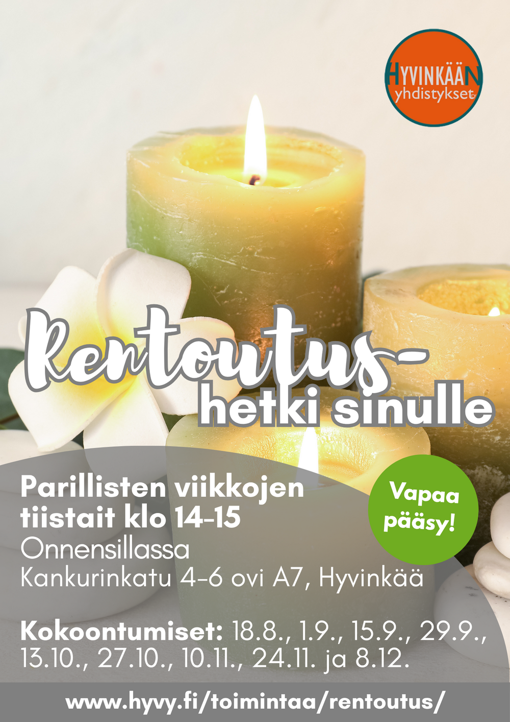 Tavoitteena on edistää hyvinvointia ja mielenrauhaa. Kutsu kaveri mukaan ja vietä mukava hetki yhdessä. Liity mukaan ja löydä oma rentouttava hetkesi.