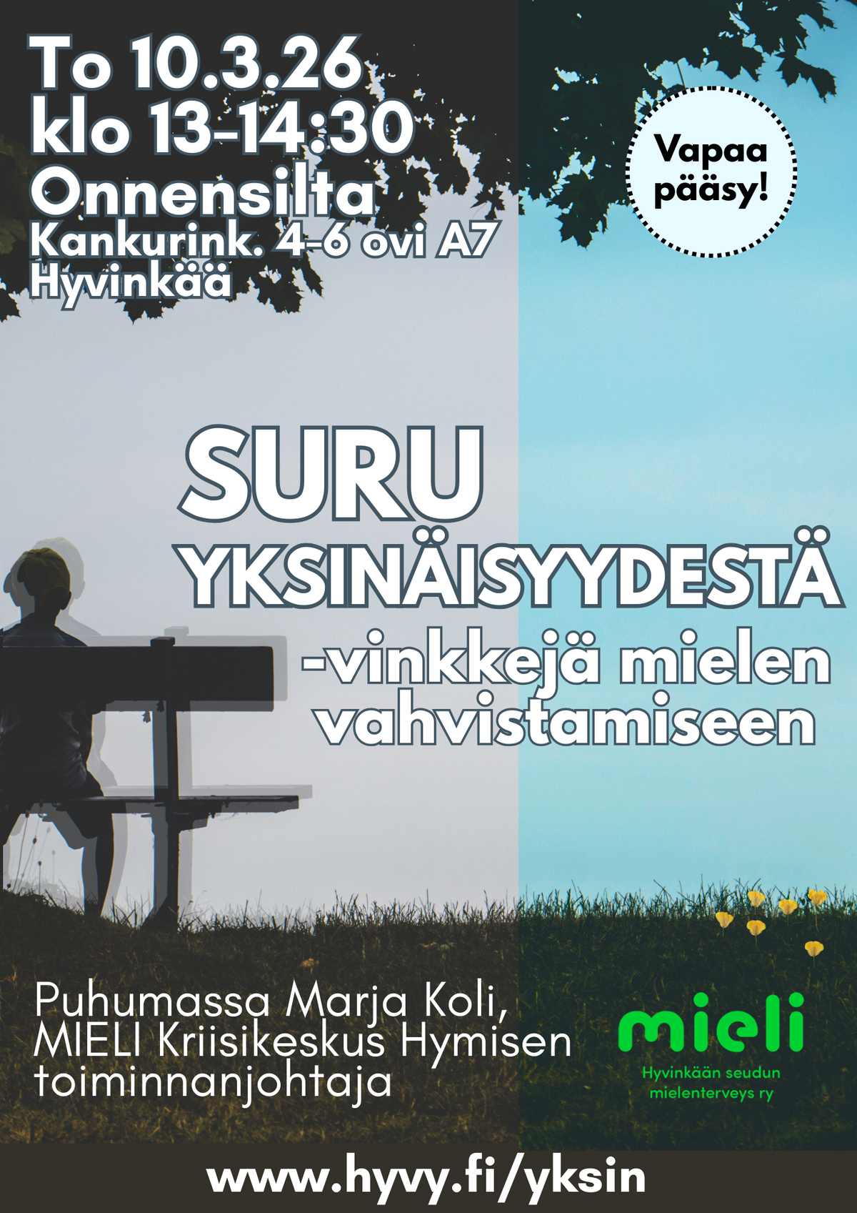 Tule mukaan keskustelemaan yksinäisyyden kokemuksista ja saa käytännön vinkkejä mielen vahvistamiseen sekä keinoja selviytymiseen haastavina aikoina.